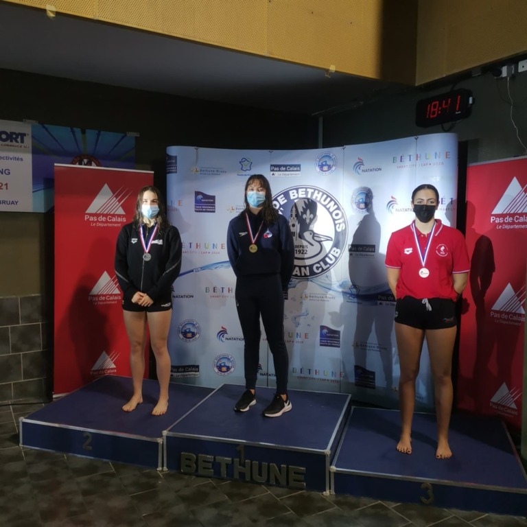 Du 23 au 28 novembre à Béthune se déroulaient les Championnats de France Nationale 2, cette compétition initialement prévue en mai a été reportée à cause du Covid. 3 nageuses de la SNO étaient qualifiées Julie Fognini , Cédrine et Caithline Frustié.